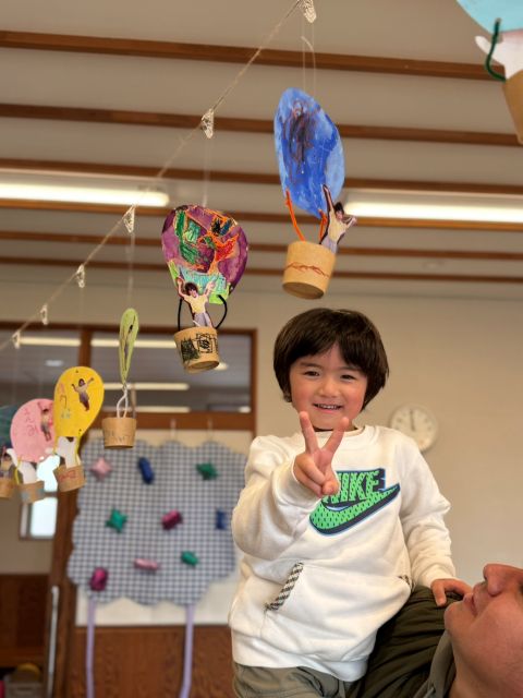 自分の作品を見つけて「上手に切ったんだよ!」「ここに飾ってある!みて!」とおうちの人に見てもらえて嬉しそうな姿や少し照れくさそうな姿も見られました。