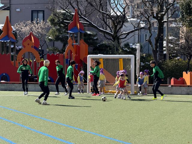 リフティングを見せてもらったり年長さんはベレーザの選手とサッカーの試合をしました。