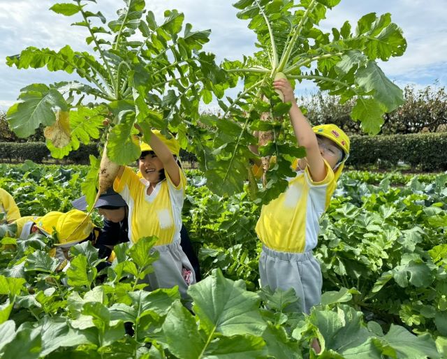 帰りのバスでは「こんなに大きな大根が取れたよ!」や「大根はスープにするんだよ~」と大根掘りの話で盛り上がっていました。是非、おうちで美味しく食べてみてください!