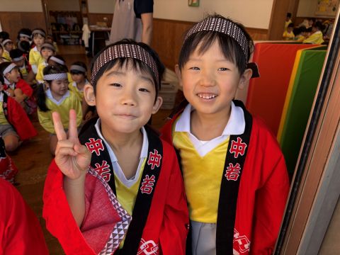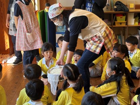 皆が力いっぱいについたお餅は幼稚園の鏡餅になるよ! どこにあるか探してみてね♪
