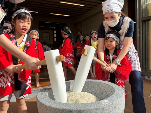 力いっぱいに「よいしょー!」と掛け声をしながらお餅をついていました。